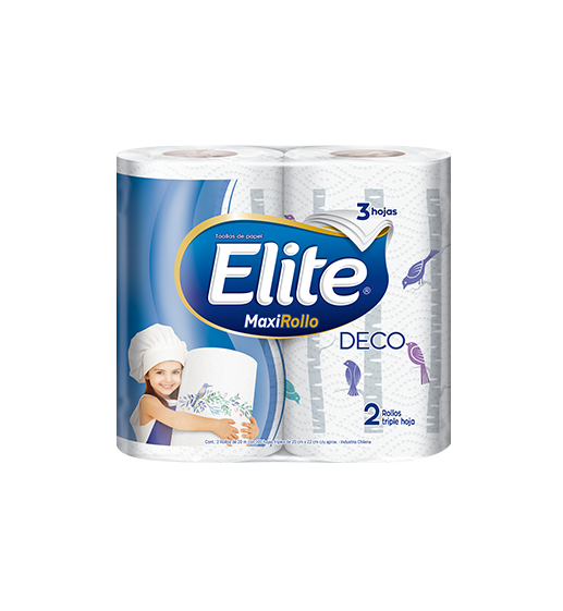Elite Deco, toallas de papel Triple Hoja con atractivos diseños para decorar su cocina y avanzada tecnología que encapsula los liquidos, permitiendo una mayor absorcion ¡Tres hojas de absorción y suavidad! Formato de 2 unidades, de 20 metros cada uno.